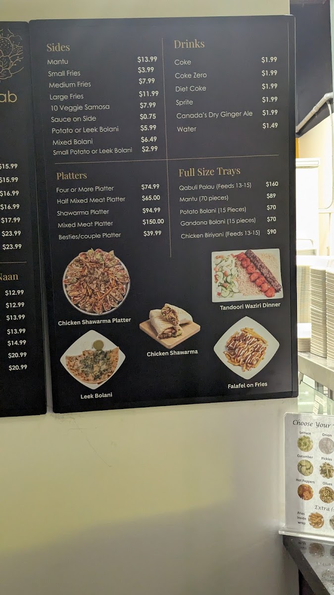 Vegetarians will rave about the Falafel Wrap, made fresh to order and served on tandoori naan, a unique twist that elevates this choice with delightful, crispy textures and delicious fillings for just CA$12.60. As long as you are there, don’t miss out on the Mantu, authentic Afghan dumplings that tantalize the senses with their perfectly balanced flavors of ground beef and peas, all for CA$13.80.